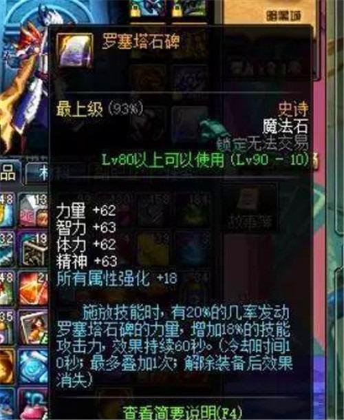 地下城勇士(罗塞塔石碑)属性:增加18技能攻击力所有属性强化增加18触发后有特效环绕