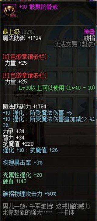 地下城勇士(骸麒的骨戒)属性:物理攻击时伤害50提升远超普通史诗戒指...¥128